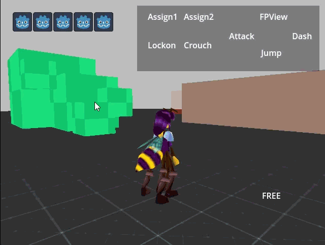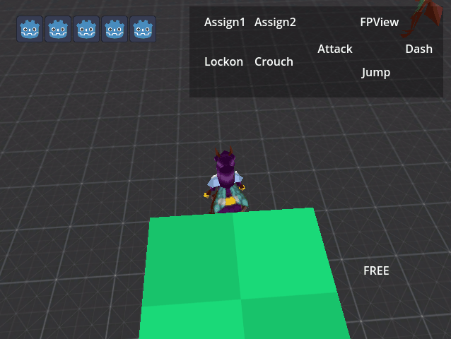 For the purposes of building the prototype, I called this "Free" camera mode. Free camera mode engages whenever any button, joystick, or mouse input is detected, save for the lock-on and first-person view buttons.